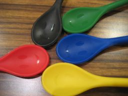 このカラーはっ!・・・・そう、トップのリングが並ぶオリンピックの五輪!もちろん5本セットです。しかもスプーンにはこれまたなスマイルフェイス付き。