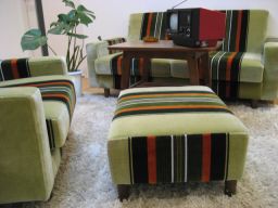 昭和レトロでは御馴染みのストライプオットマンのモケット張りです。