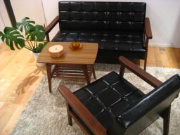 レトロカフェソファー黒1P