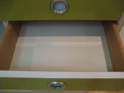 こちらは取っ手部分や戸棚の中の柄など押さえるポイントはしっかり押さえた作りです。カラーもレトロ感炸裂のマスタードイエローでいい感じデス。内部の棚部分に小さな塗装のはがれなどありますが、食器などを置けば気にならないと思います。あとサイド部分に痛みがありましたので白のウレタン塗装でリペイントしてあります。棚、ガラスなどの欠品はありません。こちらはヤマト便で発送予定ですので地域によって送料が変わります。